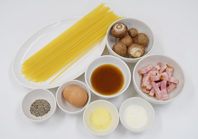 1.マッシュルームはスライスし、ベーコンは一口大の細切りにしておく。