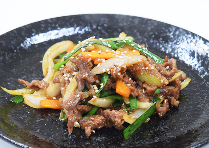コクのある旨みとクセになる辛さの旨辛だれが牛肉と野菜に絡み、旨みたっぷ…