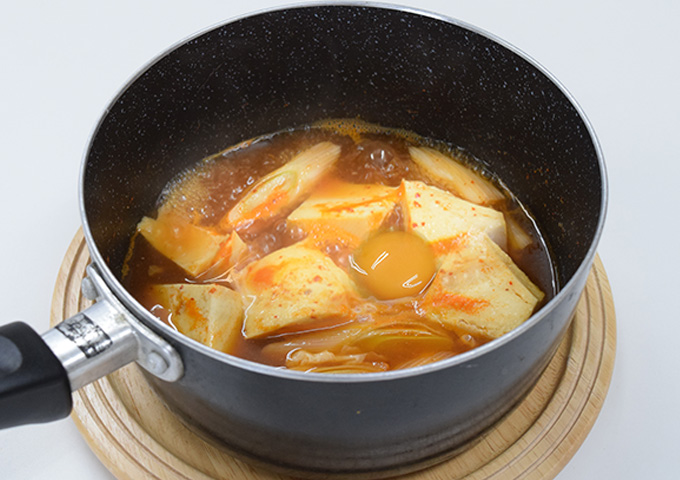 コクのある旨みとクセになる辛さの旨辛だれの甘辛スープに、豆腐がとろける…