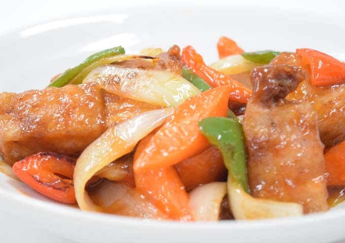 BBQソースで味付けした、コクと甘酸っぱさが楽しめる酢豚です。