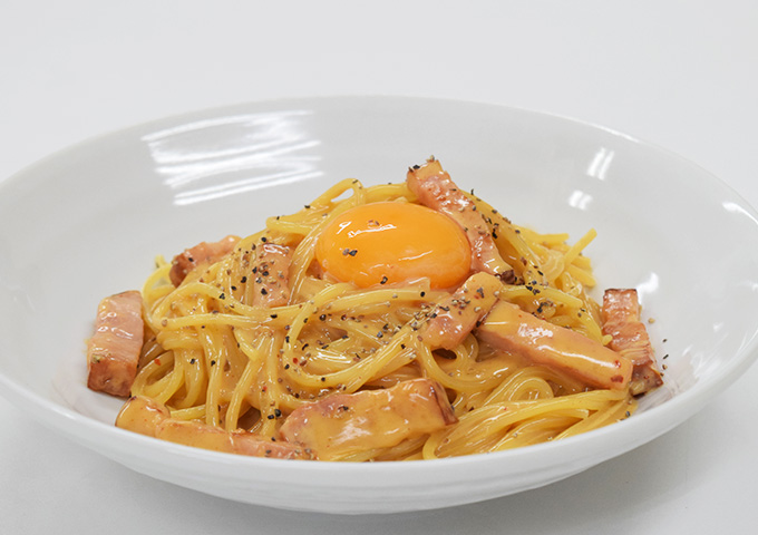 赤から焼肉のたれと相性抜群の生クリームに、香ばしく焼き上げたベーコンを合わせたピリ辛のカルボナーラがご家庭で出来ます!